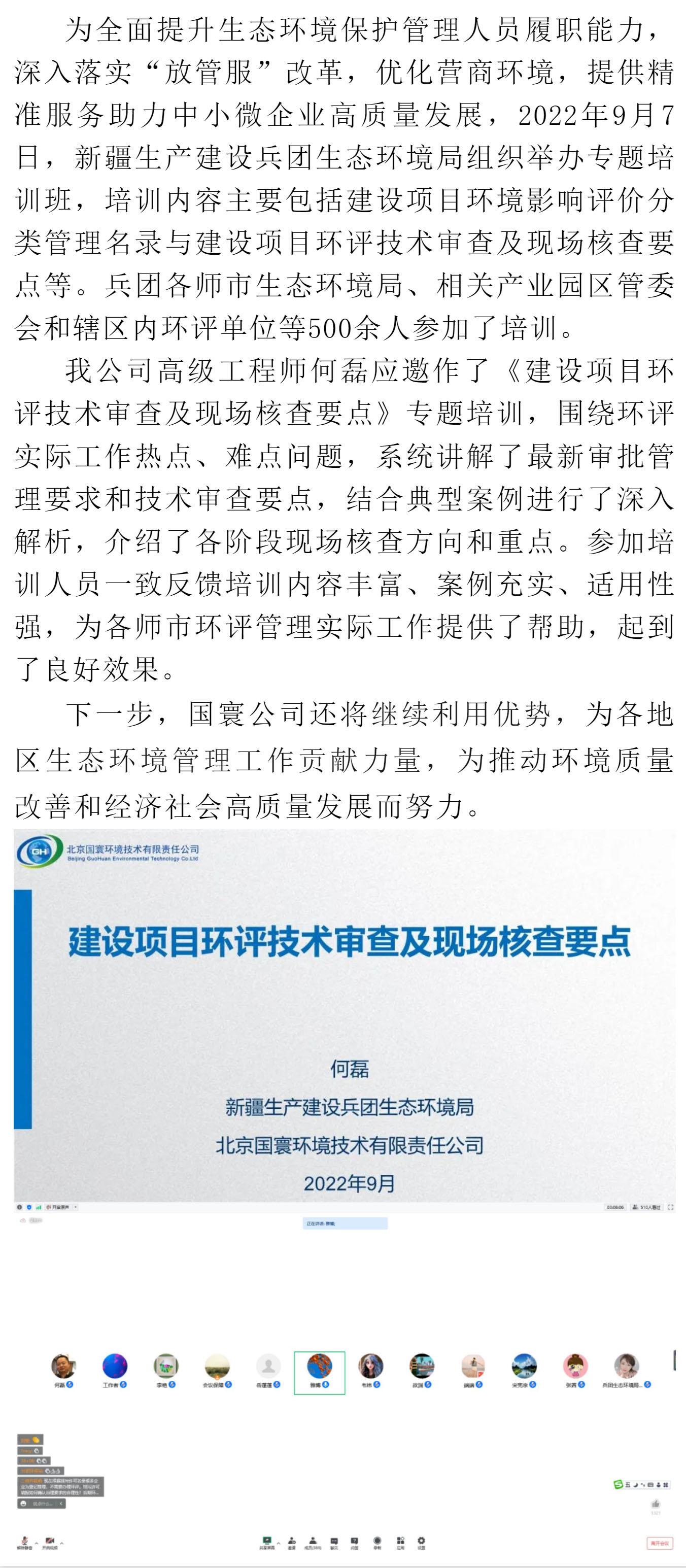 國寰公司應邀為新疆生產建設兵團開展生態環境專題培訓