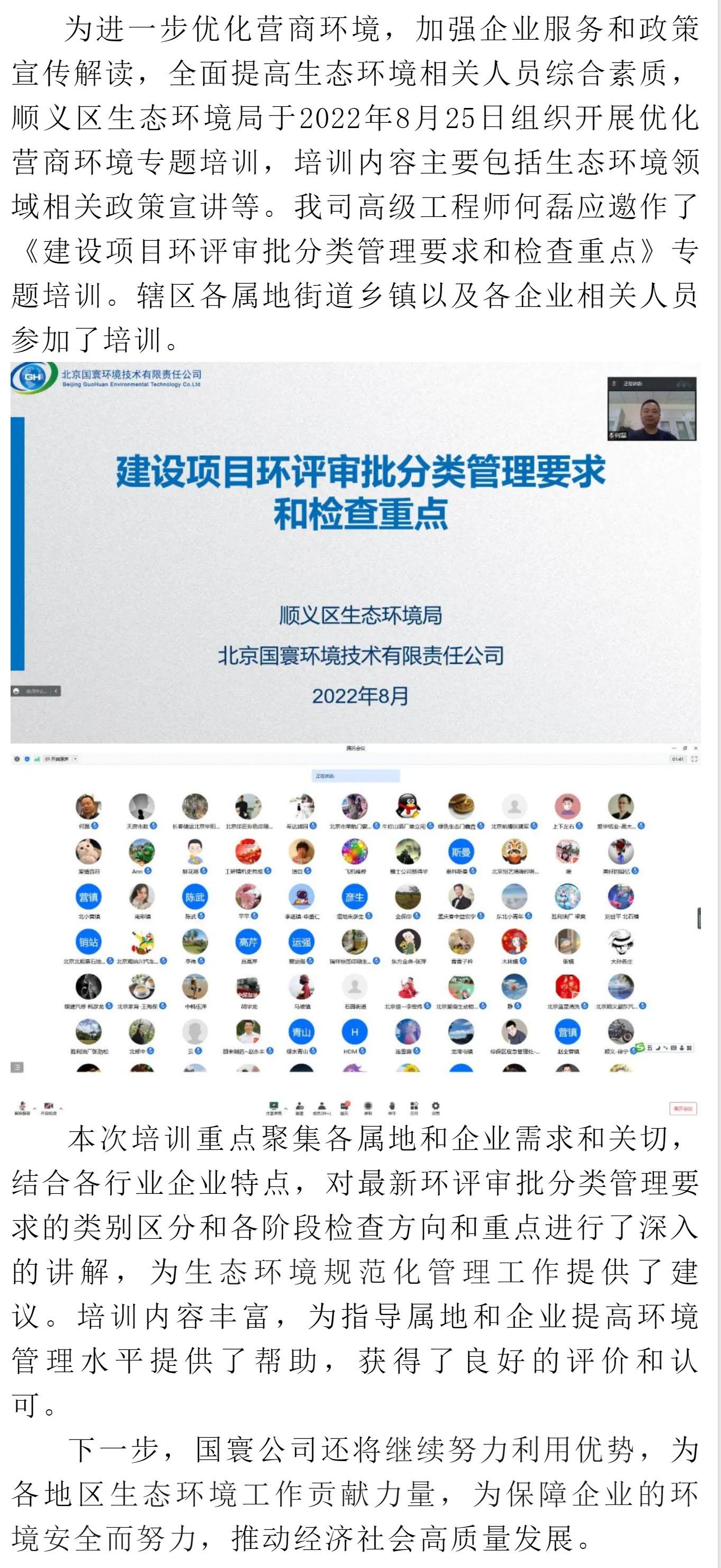 北京國寰環(huán)境技術(shù)有限責任公司應(yīng)邀為順義區(qū)開展優(yōu)化營商環(huán)境進行專題培訓