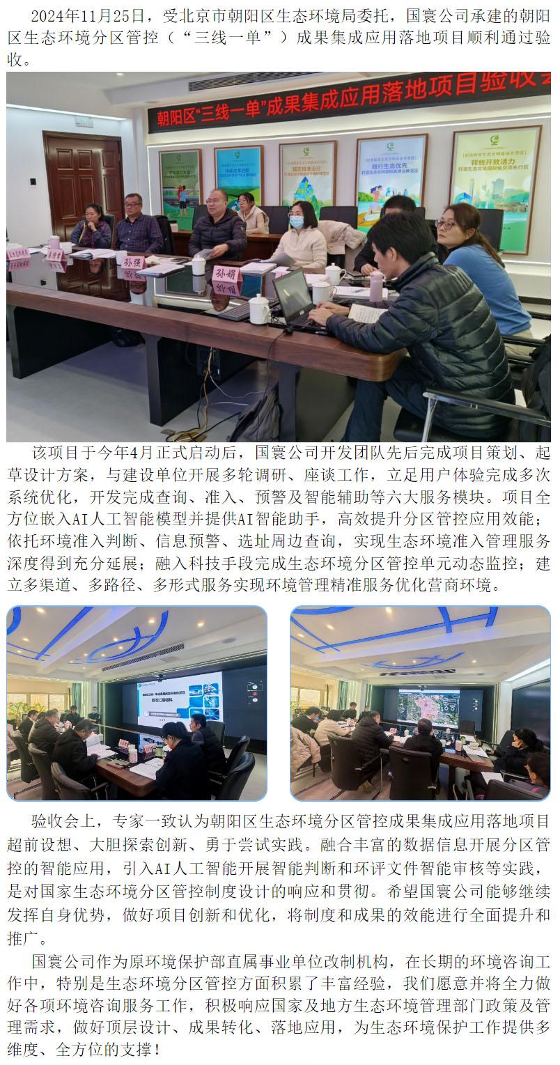 朝陽區生態環境分區管控成果集成應用落地項目順利通過驗收,國寰公司業務再添新彩