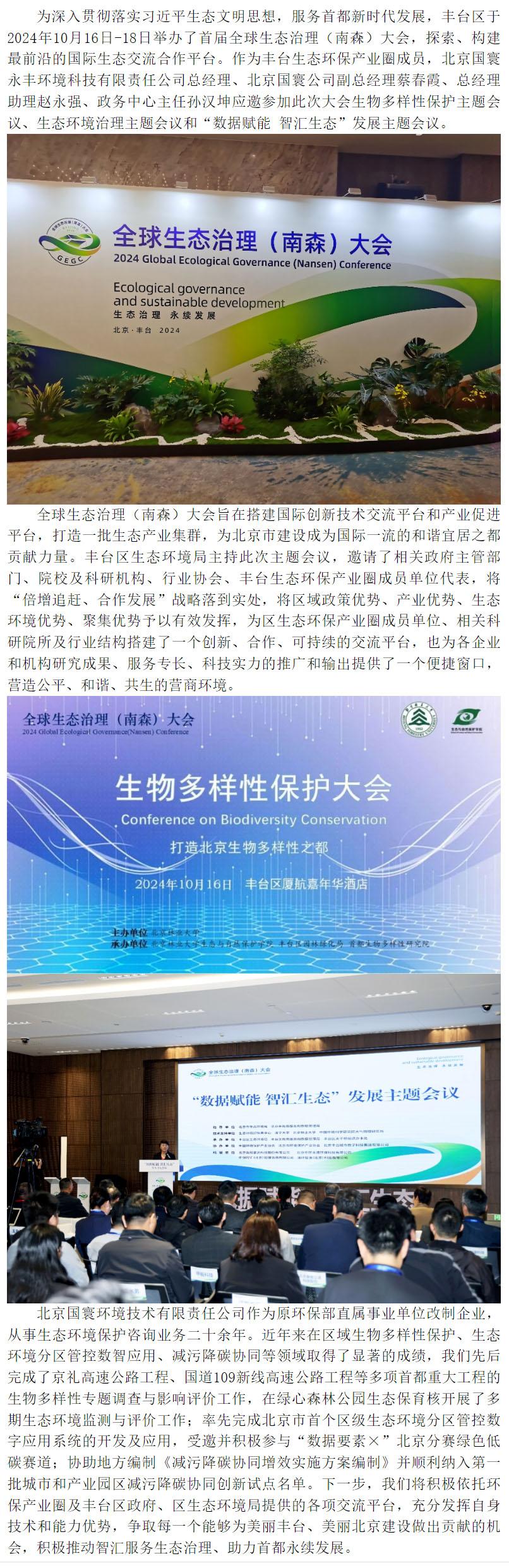 智匯服務生態治理、助力首都永續發展 國寰永豐應邀參加首屆全球生態治理(南森)大會