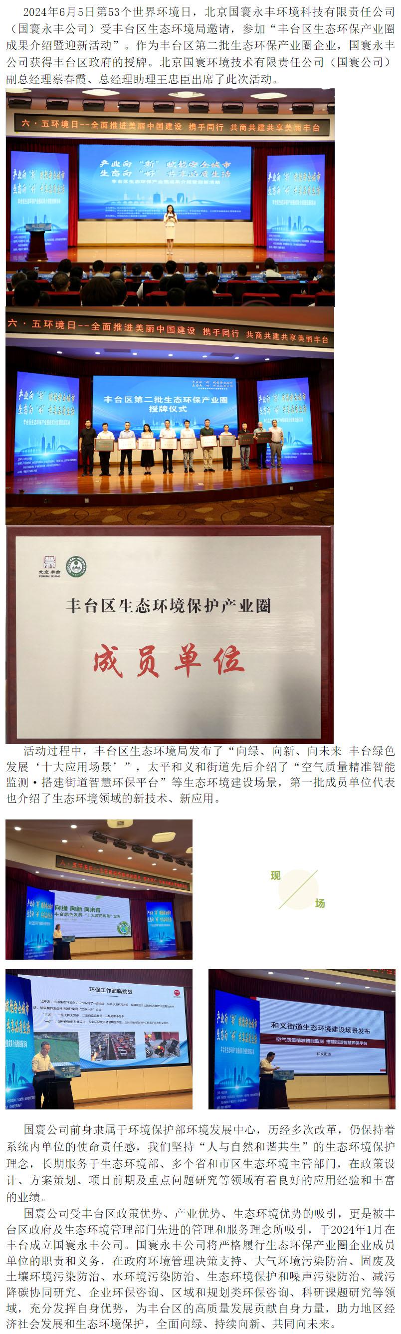 北京國寰永豐環(huán)境科技有限責任公司受邀參加“豐臺區(qū)生態(tài)環(huán)保產(chǎn)業(yè)圈成果介紹暨迎新活動”并獲得授牌