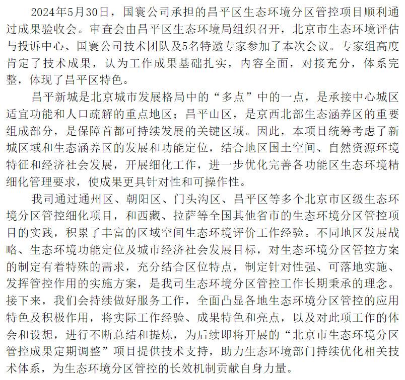 昌平區生態環境分區管控細化項目成果順利通過驗收